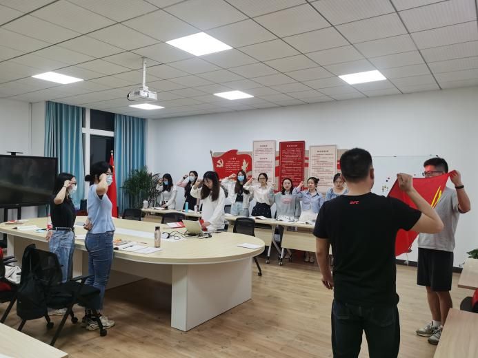 在党课学习之后,与会党员奏唱国歌并重温入党誓词,由刘芳同志领誓。接着,杨雨昕同志领读了《中国共产党章程》章节内容,全体党员现场交纳党费。