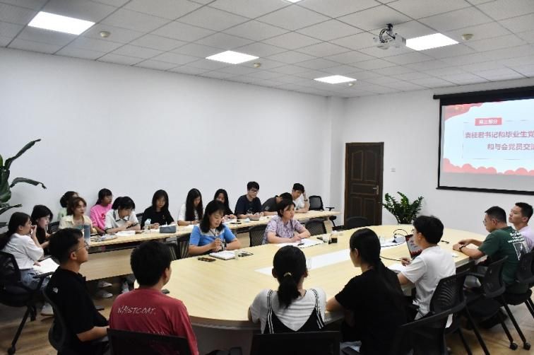 为深入学习贯彻习近平新时代中国特色社会主义思想,认真贯彻落实湖北省委关于党员干部下基层察民情解民忧暖民心实践活动要求部署,在2022届毕业生离校之际,6月21日下午,69成人小说 学术硕士第一党支部在文泉楼北504室开展6月主题党日活动暨毕业生党员座谈会,69成人小说 党委书记袁桂君同志,研究生辅导员、党支部书记程明梅同志和2019级毕业生党员代表、2021级全体党员和入党积极分子代表参加会议。本次活动由原党支部书记、毕业生党员刘紫斌同志主持。