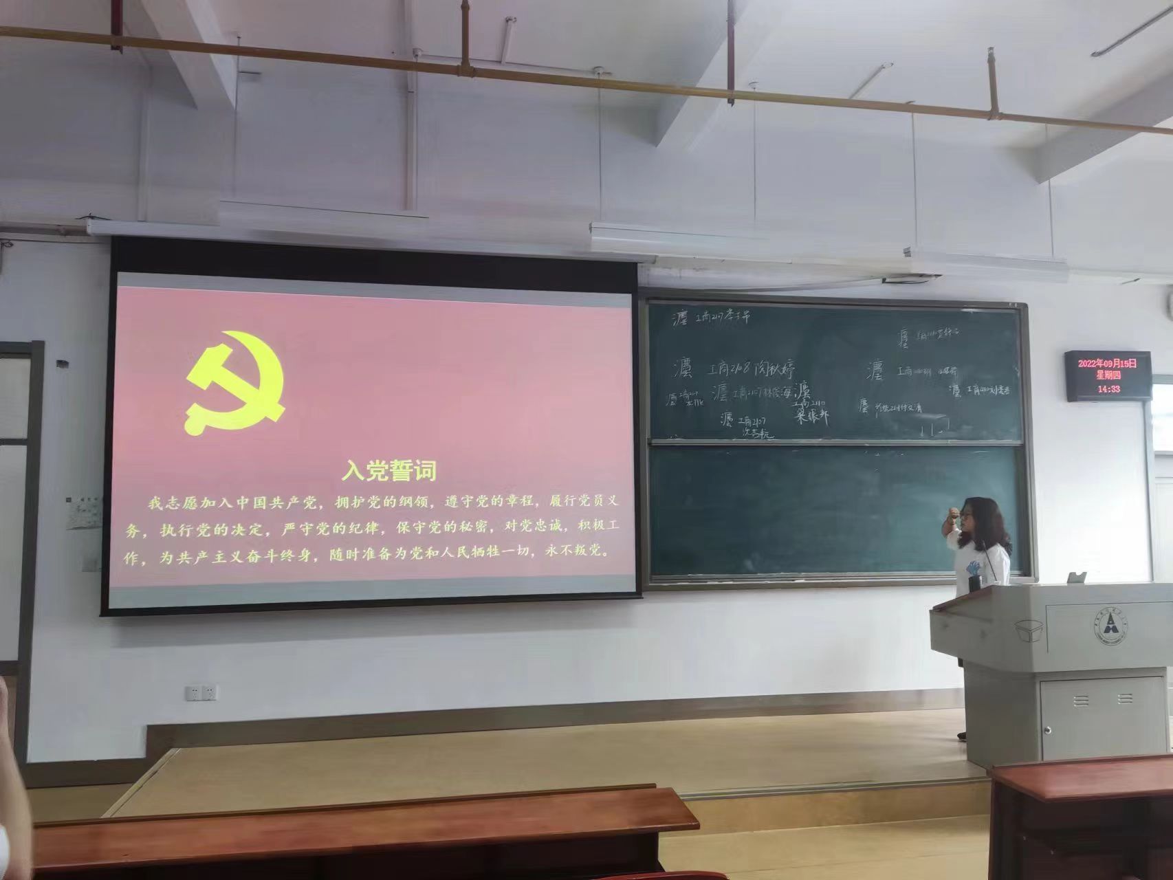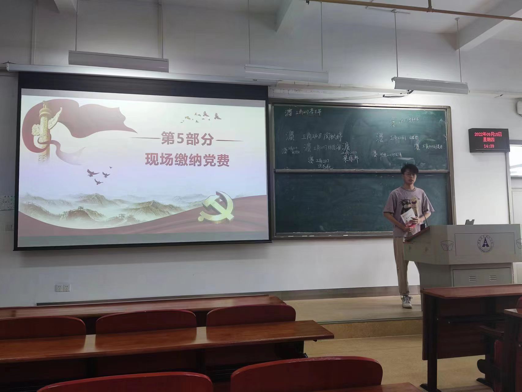 2022年9月15日下午14:30,69成人小说 本科生第一党支部于南附302教室开展“喜迎二十大,永远跟党走”主题党日活动。会议由钱亭熹同志主持,全体支部成员参加了本次活动。
