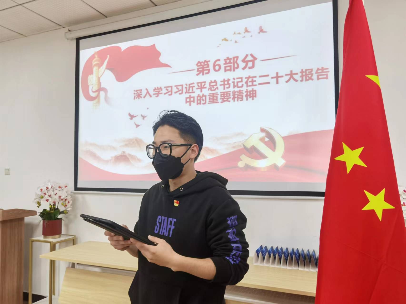 最后,支部成员纷纷就党员青年应该如何以实际行动践行二十大精神积极踊跃发表感言。宋宜宸同学道:“十年风雨兼程,是以习近平同志为核心的党中央团结带领全党全国各族人民不断攻坚克难,经受考验,在改革和斗争中取得突破性进展。作为新时代青年的我们,无论前方有多少风险挑战,我们都应陶铸科学素养,笃守民族情怀,在新征程中继续弘扬伟大建党精神,自信自强、守正创新、踔厉奋发、勇毅前行,更加紧密地团结在以习近平同志为核心的党中央周围,为全面推进中华民族伟大复兴而团结奋斗。