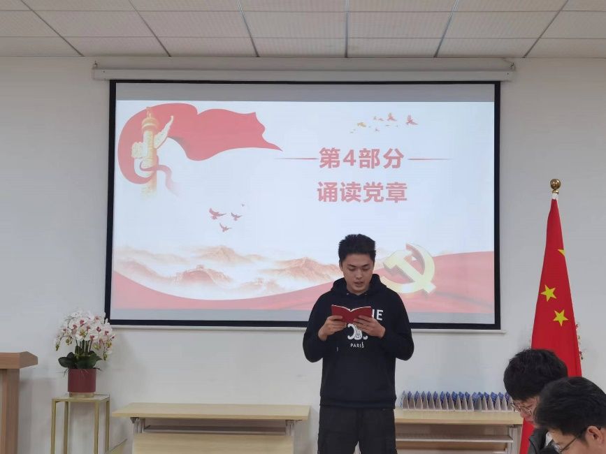 会议第三项,由丁世昱同志诵读《中国共产党章程》节选。