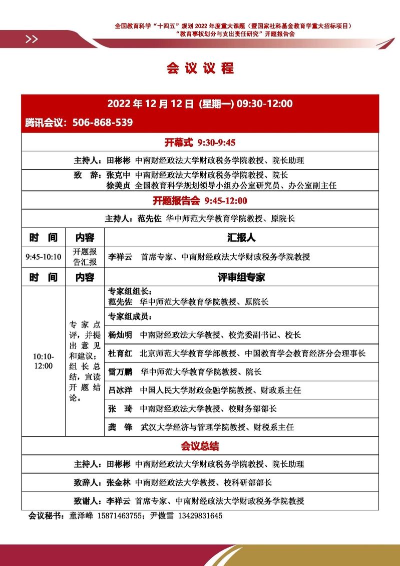 会议通知|2022年度国家社科基金教育学重大招标项目“教育事权划分与支出责任研究”开题报告会议程