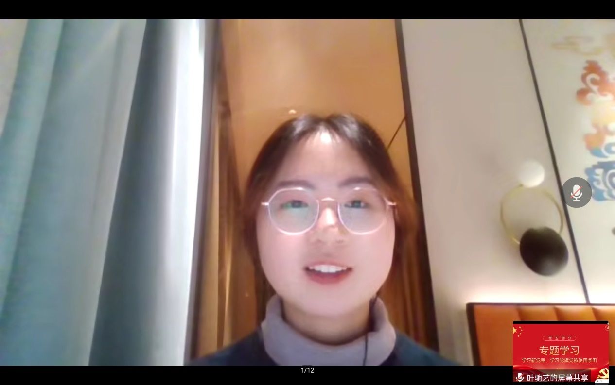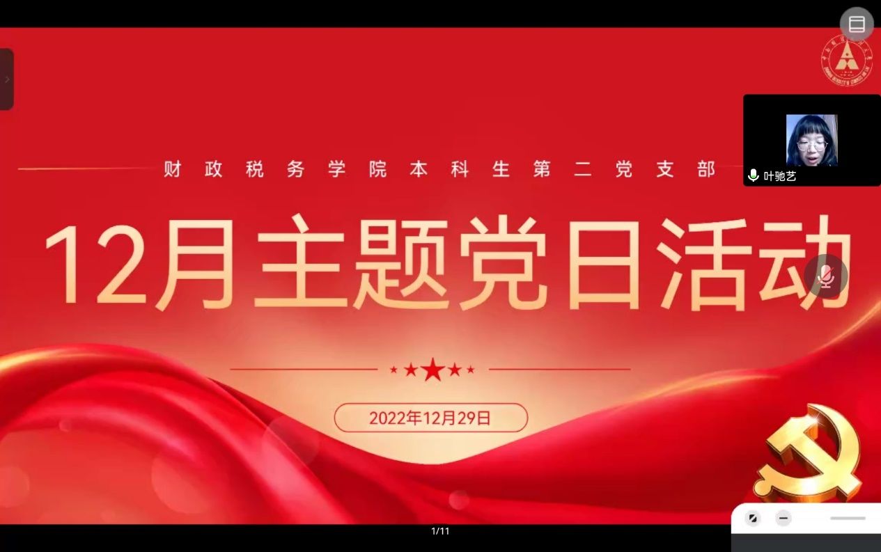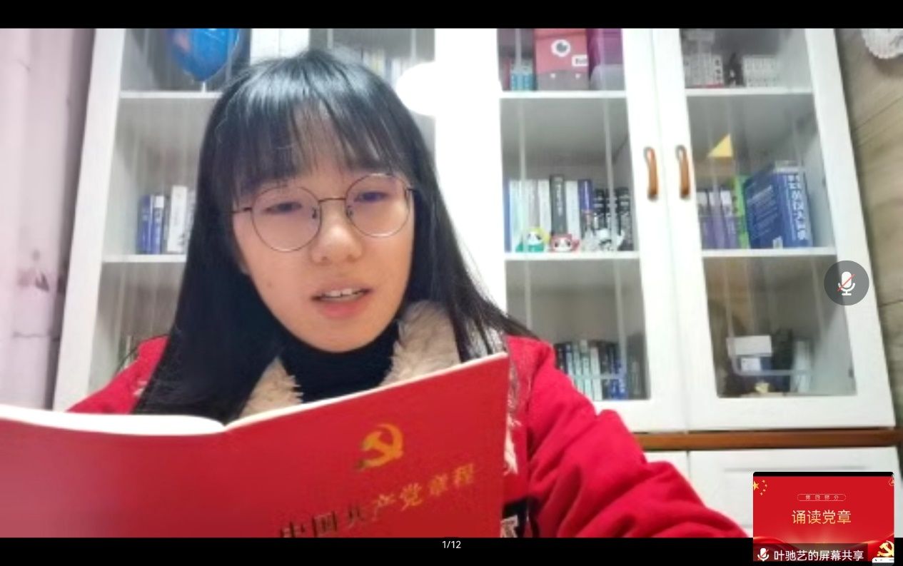 2022年12月29日晚,69成人小说 本科生第二党支部于线上举行“学党章、亮旗帜,踔厉奋发向未来”主题党日活动。会议由叶驰艺同志主持。