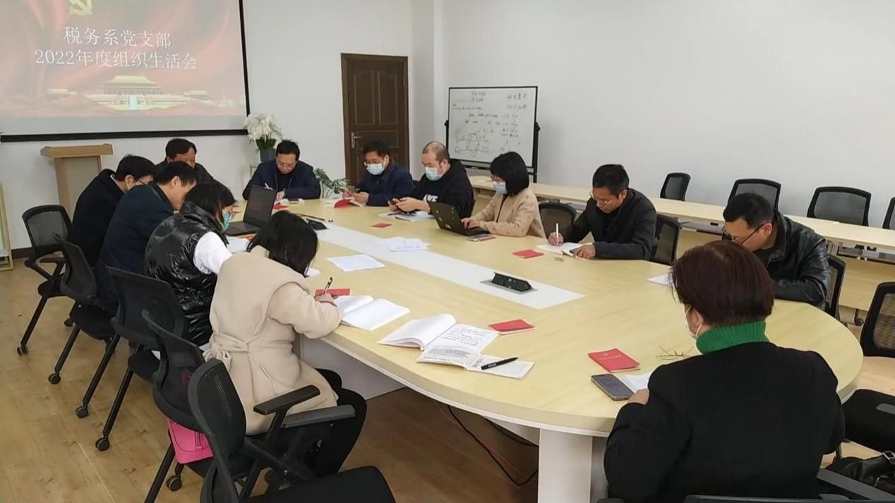 近日,税务系全体党员在税务系办公室开展年度组织生活会和民主评议党员活动,会议由党支部书记庄佳强同志主持,税务系全体党员参加了组织生活会。