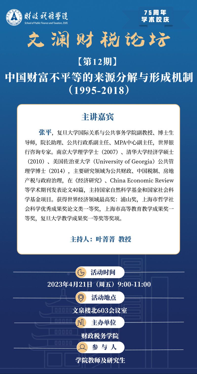 75周年学术校庆讲座 | 文澜财税论坛(第12期):复旦大学张平副教授