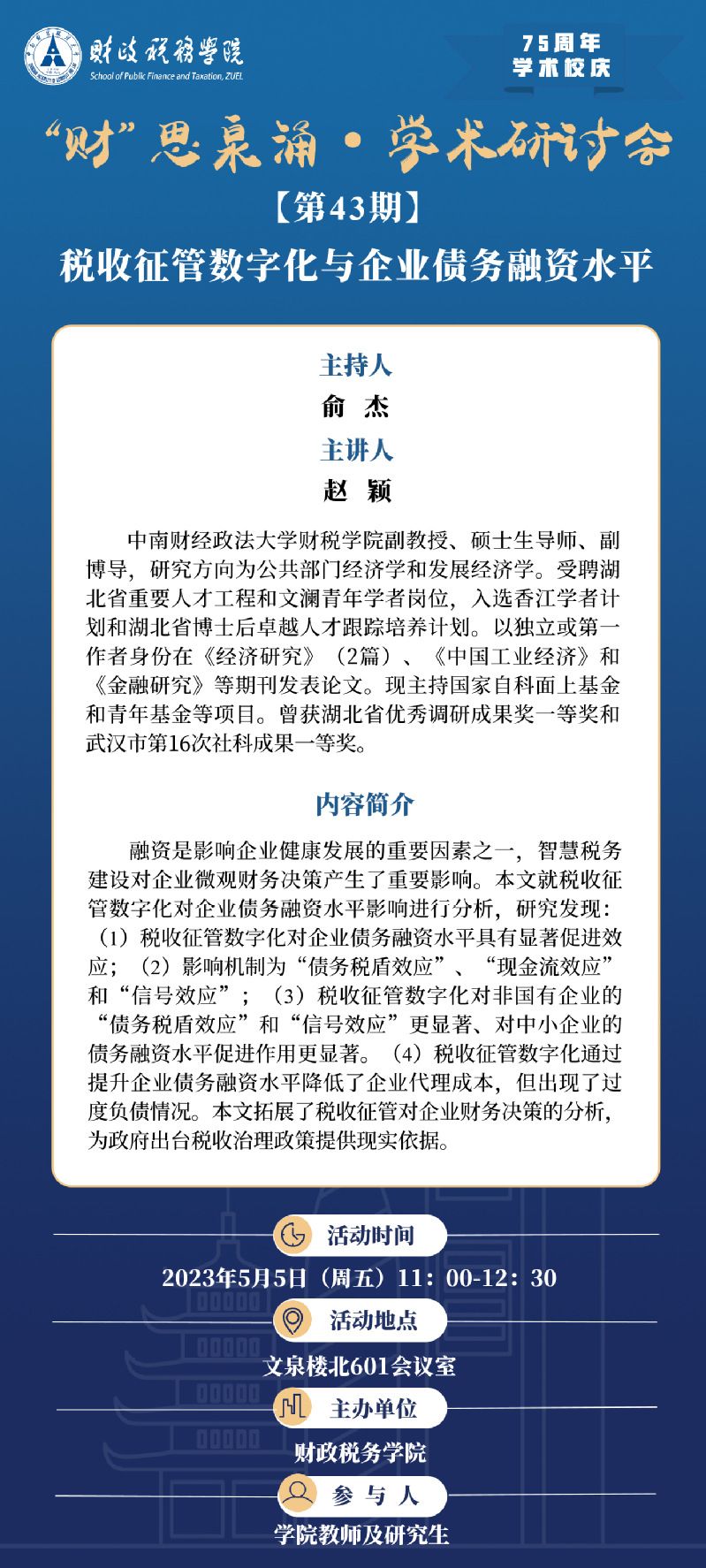 75周年学术校庆讲座 | “财”思泉涌·学术研讨会(第43期)