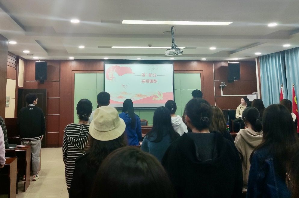 会议第一项,党支部全体成员起立,颂唱国歌。