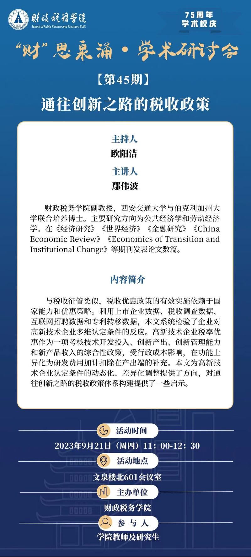 75周年学术校庆讲座 | “财”思泉涌·学术研讨会(第45期)