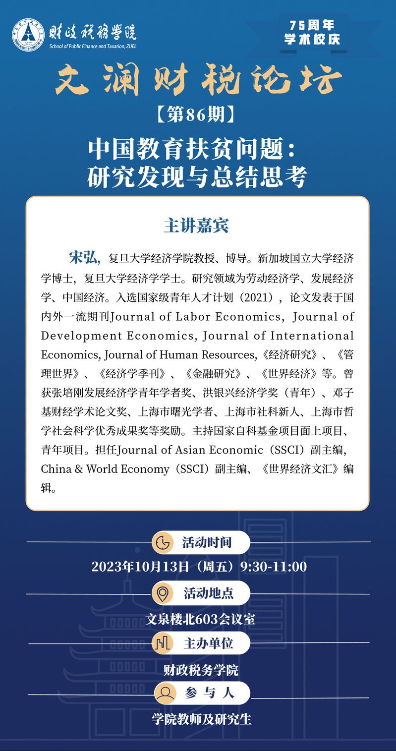 75周年学术校庆讲座 | 文澜财税论坛(第86期):中国教育扶贫问题:研究发现与总结思考