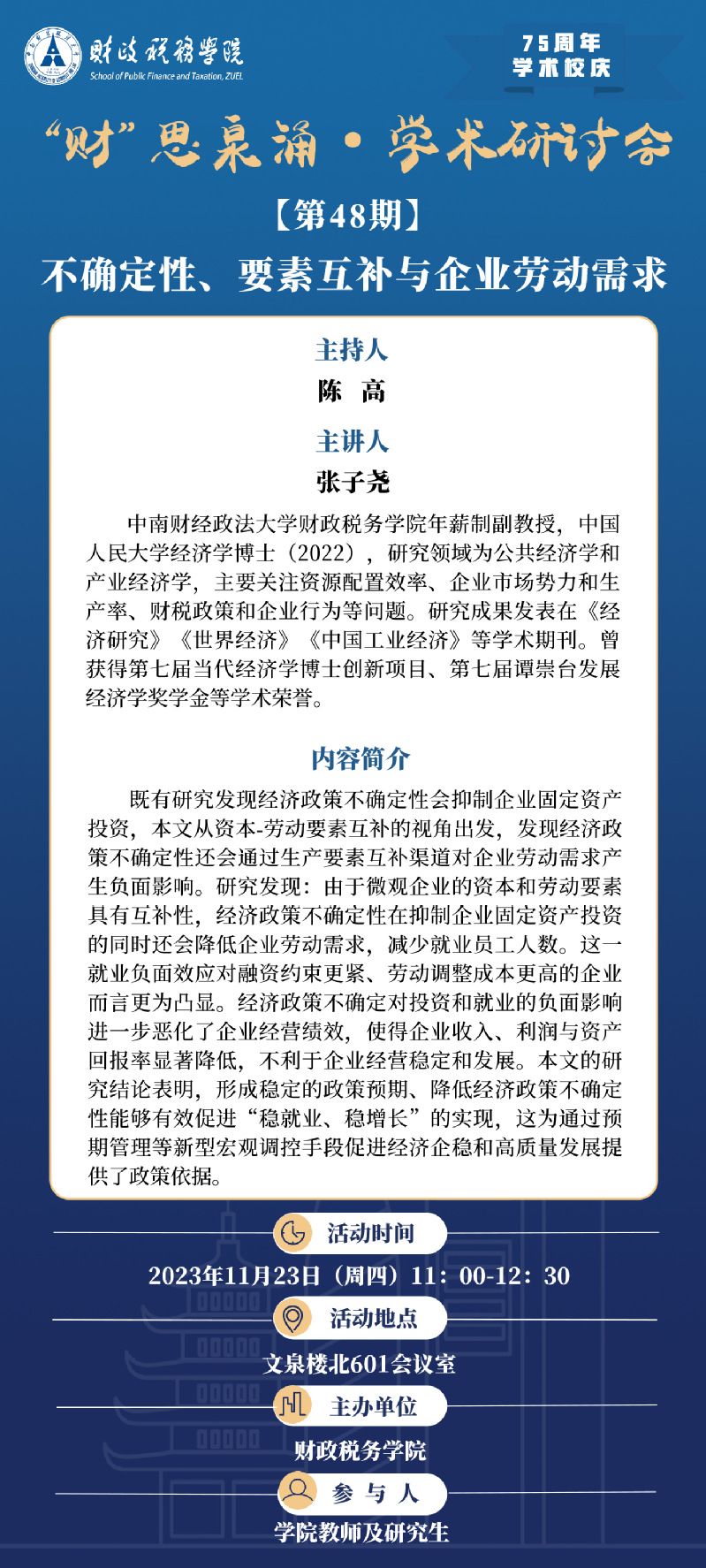 75周年学术校庆讲座 | “财”思泉涌·学术研讨会(第48期)