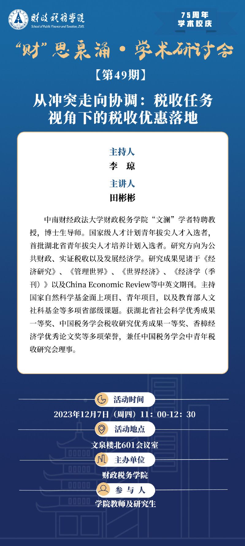 75周年学术校庆讲座 | “财”思泉涌·学术研讨会(第49期)