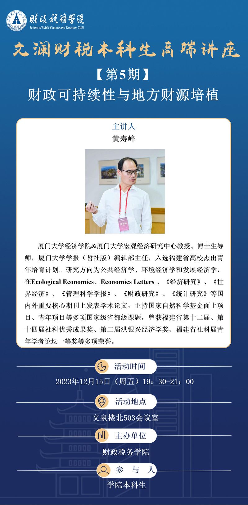 【讲座预告】文澜财税本科生高端讲座(第5期)