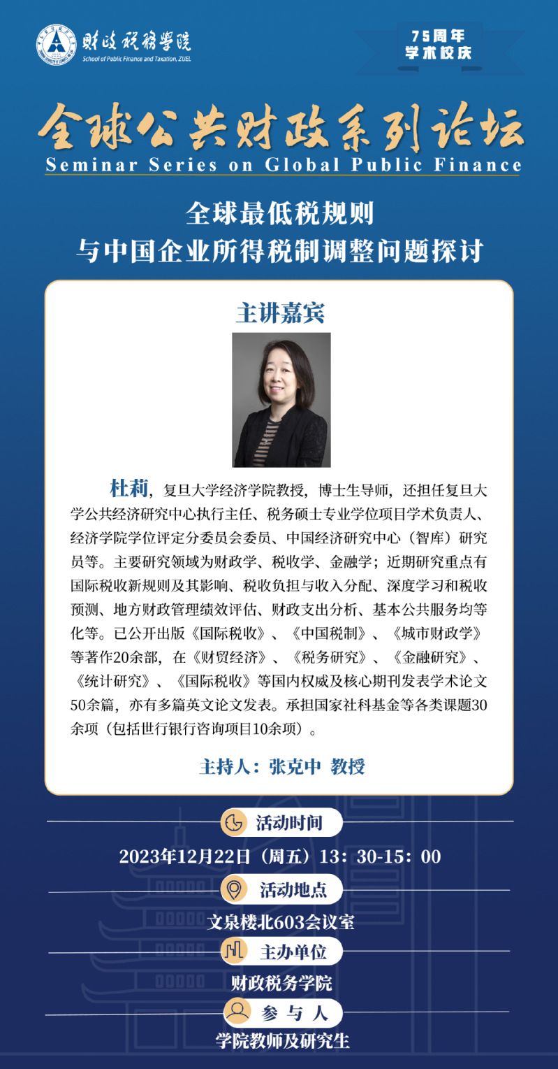 75周年学术校庆讲座 | 全球公共财政系列论坛:复旦大学杜莉教授