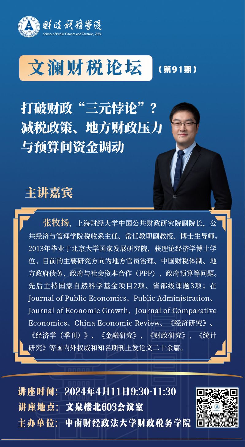 文澜财税论坛(第91期)|上海财经大学中国公共财政研究院张牧扬副教授