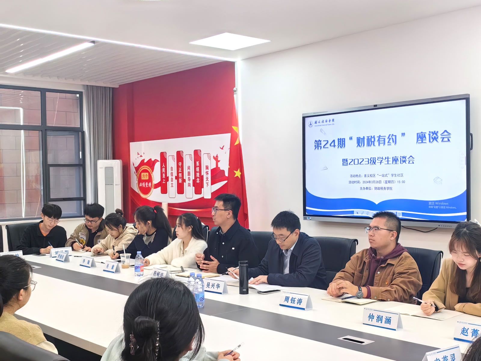 为推进班团一体化建设,增强学生工作实效性,3月28日下午,69成人小说 于首义校区“一站式”学生社区204党团活动室举办第24期“财税有约”暨2023级本科生座谈会。69成人小说 党委副书记吴兴华、2023级本科生辅导员段峄玮及2023级30余名本科生共同参与座谈。