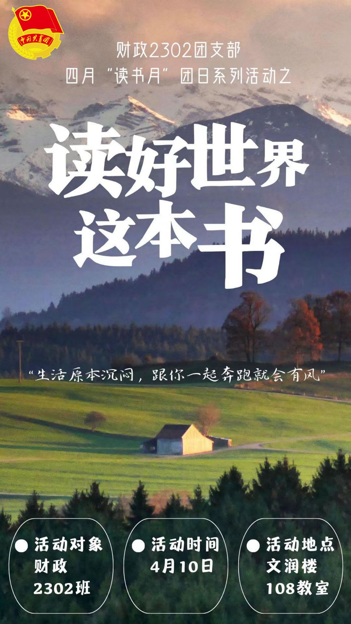数财2301团支部将读书分享与素质拓展相结合,组织同学们赴武汉植物园开展春日读书游园会,同学们围坐草地分享书籍,进行趣味互动游戏,在春日美景中阅读经典、强心健体;结合“好书赏析”“书签盲盒”“话剧欣赏”等活动,引领同学们关注传统文化,拓展阅读视野。财政2302团支部结合主题团课带领同学们赏析经典诗词,通过诗书谜盘比拼、撷诗赠诗录诗、三行次韵诗创作,同学们深度感悟诗书之韵;举办“读好世界这本书”分享会,邀请同学们分享在旅途中“读到的世界”,鼓励同学们将“读万卷书”向“行万里路”进行实践转化,在看世界中感悟文化,丰富人生。