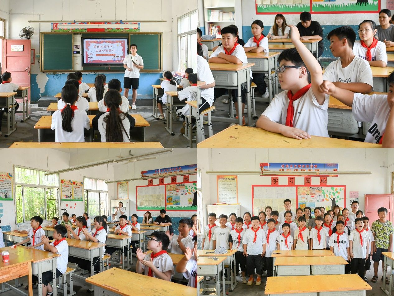 下午,实践队成员为宝丰县肖旗乡三里营村中心小学的同学们带来了生动、有趣的“财税小课堂”。实践队成员将财税基础知识融入到一个个小游戏中,通过“税收三字经”等简单易记的方式,吸引同学们感悟红色财税精神,了解财税对于国家的重要意义。分别之际,实践队成员为大家介绍了在中南大的学习生活情况,鼓励同学们勤奋学习,争取未来在晓南湖畔再会。