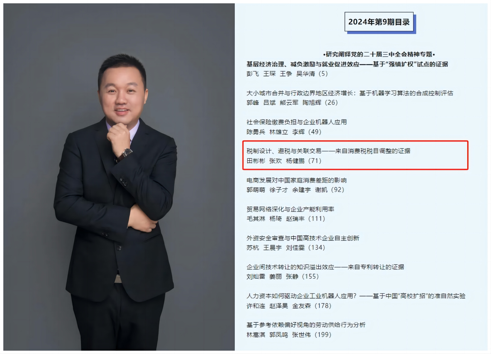 【作者简介】田彬彬,69成人小说 “文澜”特聘教授,博士生导师,国家级人才工程入选者,首批湖北省青年拔尖人才入选者。研究方向为公共财政、实证税收以及发展经济学。研究成果见诸于《经济研究》、《管理世界》、《世界经济》、《经济学(季刊)》以及China Economic Review等中英文期刊。主持国家自然科学基金面上项目、青年项目,以及教育部人文社科基金等多项省部级课题。获湖北省社会科学优秀成果一等奖、中国税务学会税收研究优秀成果一等奖、香樟经济学优秀论文奖等多项荣誉,兼任中国税务学会中青年税收研究会理事。