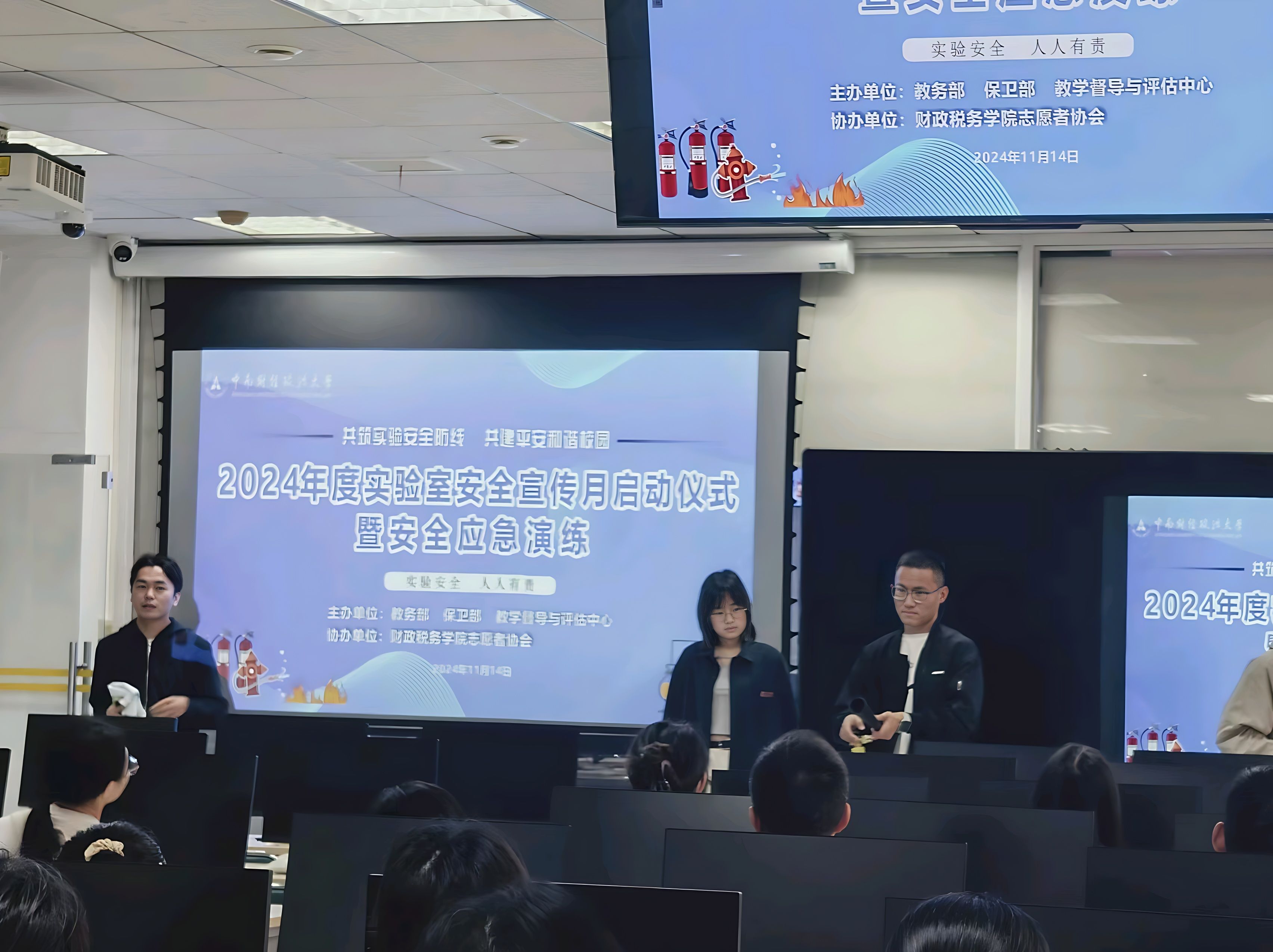 具备专业资质的老师为同学们讲授实验室消防安全知识。其讲解涵盖了实验室中潜藏的各类火灾隐患、火灾预防的核心要点以及火灾发生后的精准处理方式等多维度内容。为助力同学们切实领悟相关知识要点,专业人员特意挑选了数名同学,对实验室突发火灾时的正确应对举措予以现场展示,通过直观的呈现让知识更易吸收。