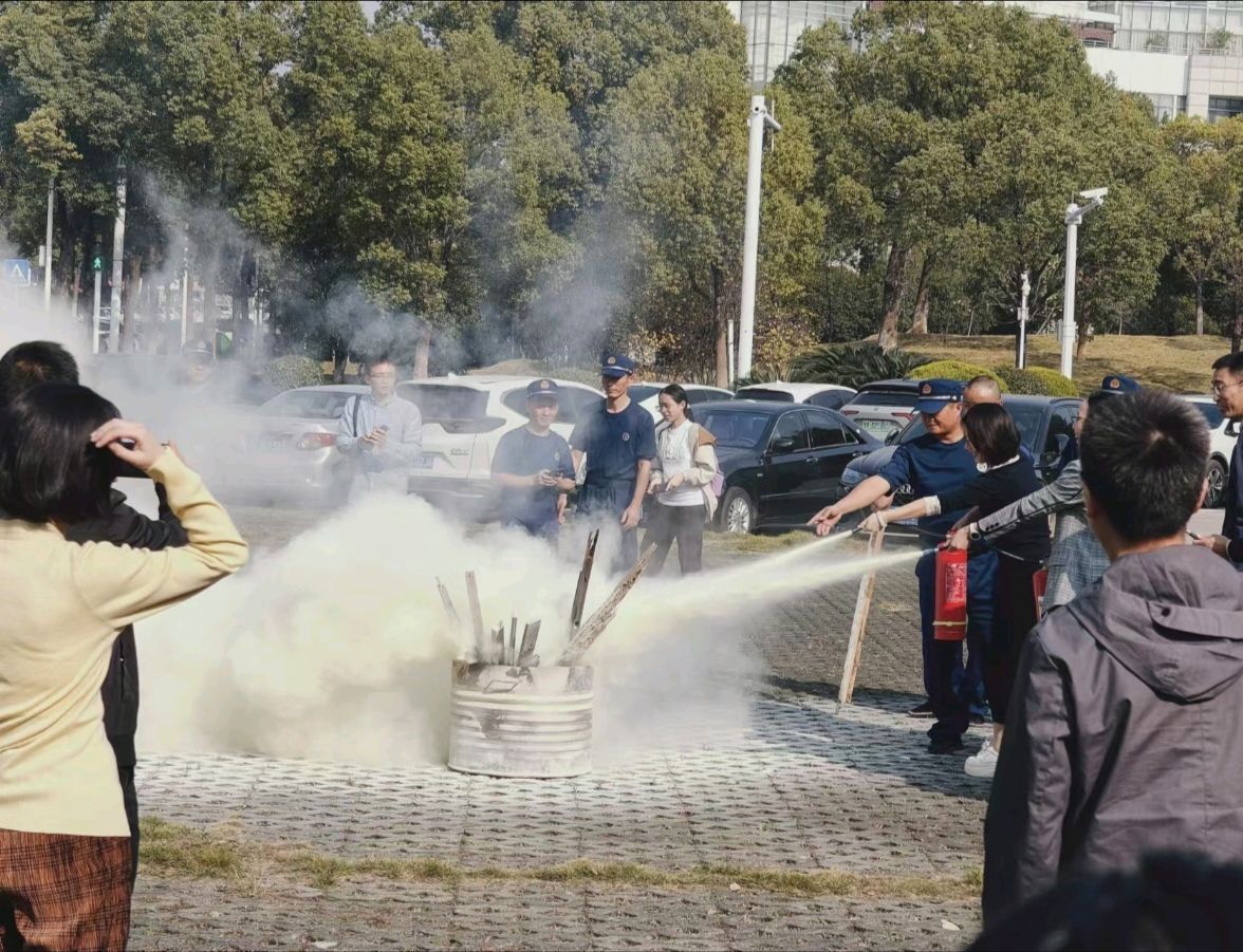 工作人员有序组织同学们于文泉楼的户外场地开展灭火实操培训。消防员率先详细地为同学们讲解了干粉灭火器与二氧化碳灭火器的具体使用方法。讲解完毕后,组织同学们亲身使用灭火器进行灭火实操演练。同学们全神贯注,牢记“提、拔、握、压”这一操作四字秘诀,面对火源时,动作精准流畅,有条不紊地实施灭火操作,成功迅速地控制住火势,并最终扑灭了火焰。通过此次实操培训,同学们不仅切实掌握了灭火器的使用技能,更增强了应对火灾的实际能力与信心。