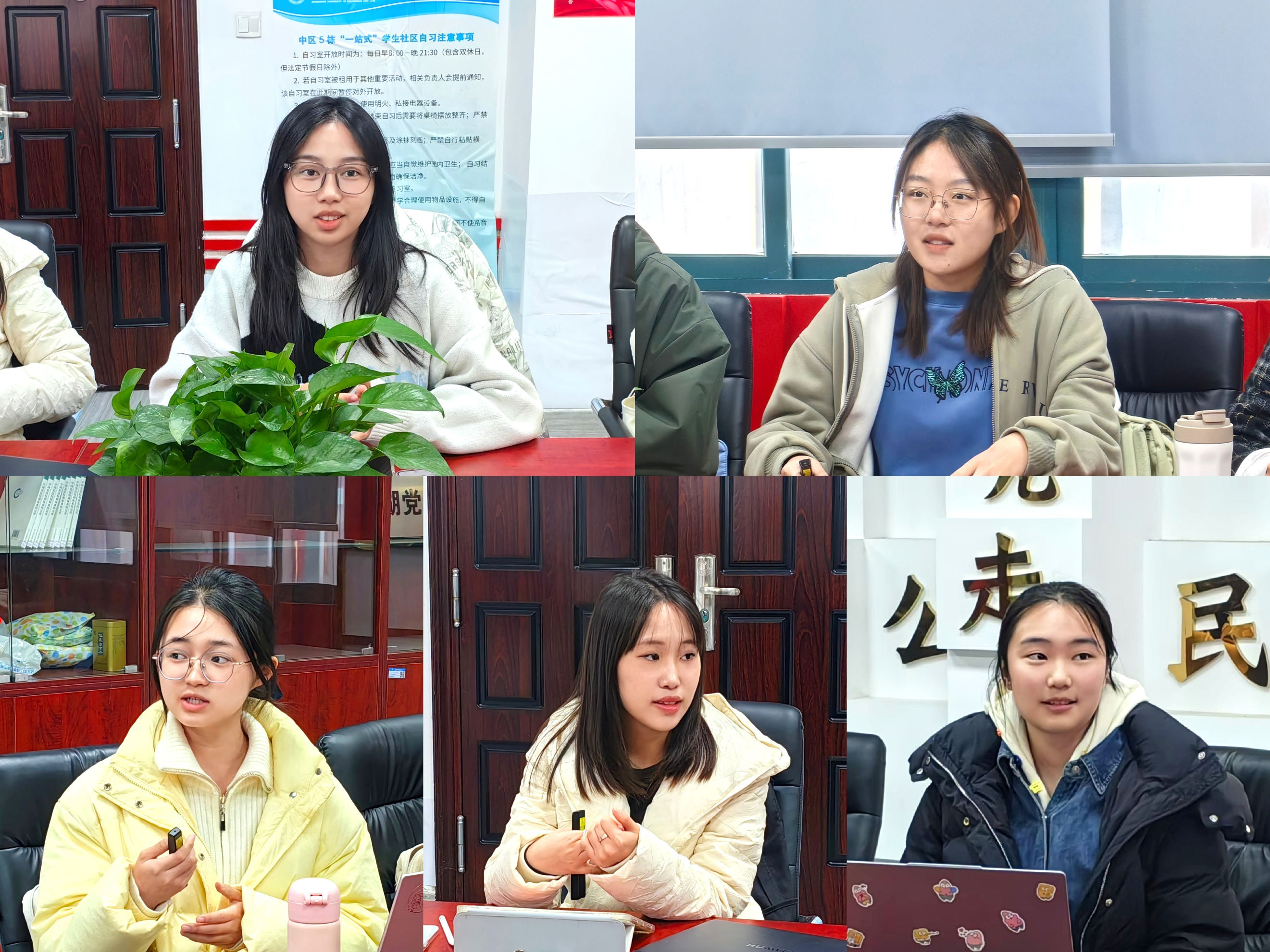 财政2301班李璇围绕班级特色、活动举办、日常服务等方面分享班级工作经验,介绍在组织“班导师咖啡会”“学习经验分享会”“共享除夕”等集体活动中如何调动班委积极性,增强班级凝聚力,构建温暖和谐的班级氛围。数财2301班郑颖怡立足班长“上传下达”的角色定位,强调在班级工作中沟通交流的重要性,讲述如何通过组织建设、学风建设、文化建设等方面把牢班级建设方向,切实为班级集体事务和同学们日常生活做好服务工作。