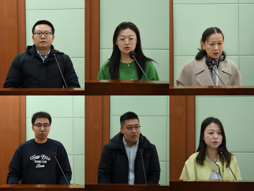 会上,学院行政人员逐一对2024年度工作进行现场述职。各位老师围绕思想政治学习、岗位职责履行、业务能力提升、工作实效成绩等方面进行了全面深入的汇报。述职结束后,学院组织开展了民主测评和投票推荐。