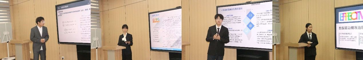 参赛项目紧扣时代命题,涵盖数字经济、乡村振兴、绿色财税、养老保障等热点领域,与时事热点紧密结合。各团队态度积极认真,项目报告完整明确,PPT汇报条理清晰,答辩过程中立足于研究方向简明扼要地阐述观点,面对评委老师的提问选手们从容不迫、表达流畅。评委老师综合创新点、选题原因、理论依据、研究意义等方面进行打分,针对各项目的优缺点进行指导与鼓励。