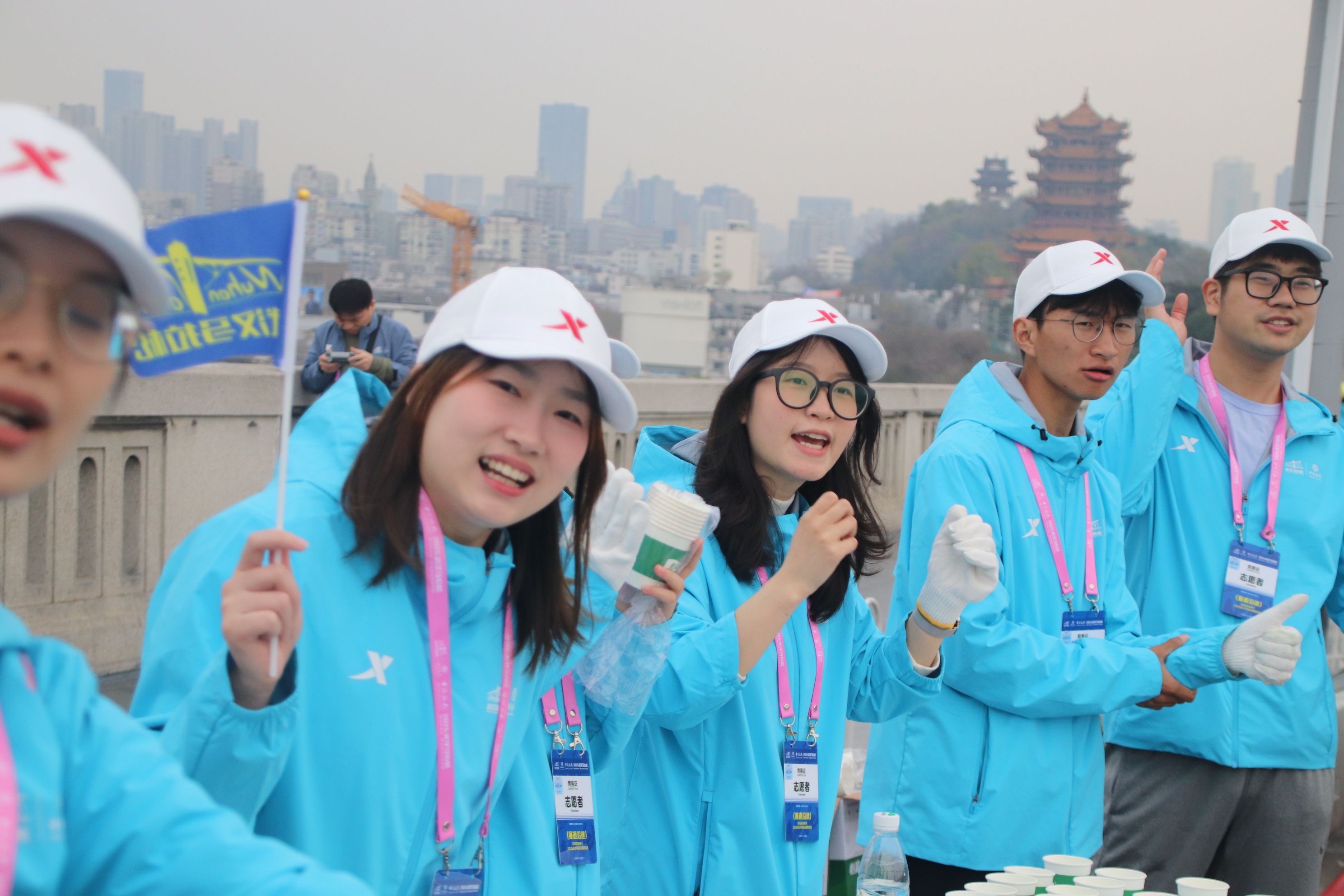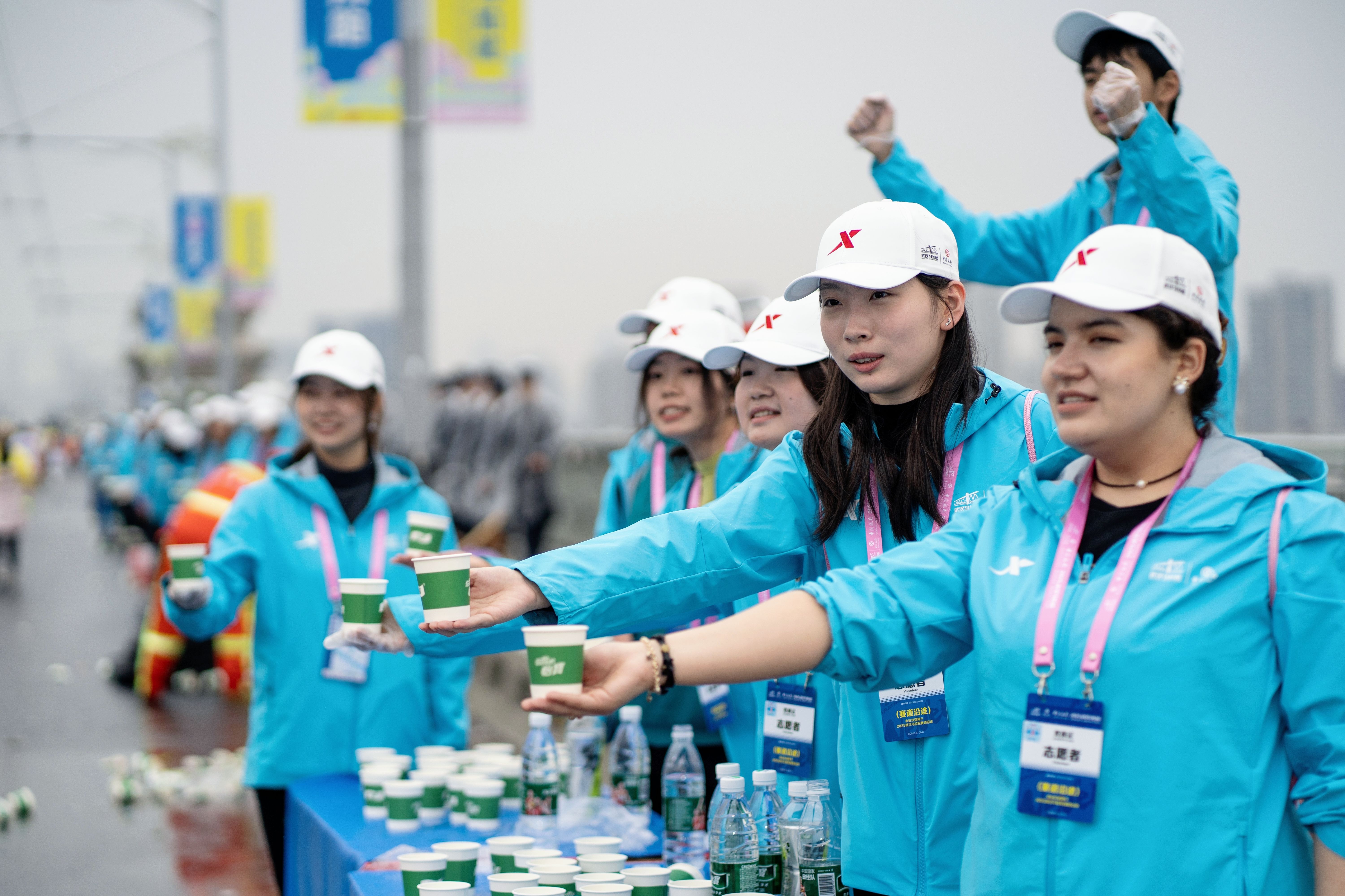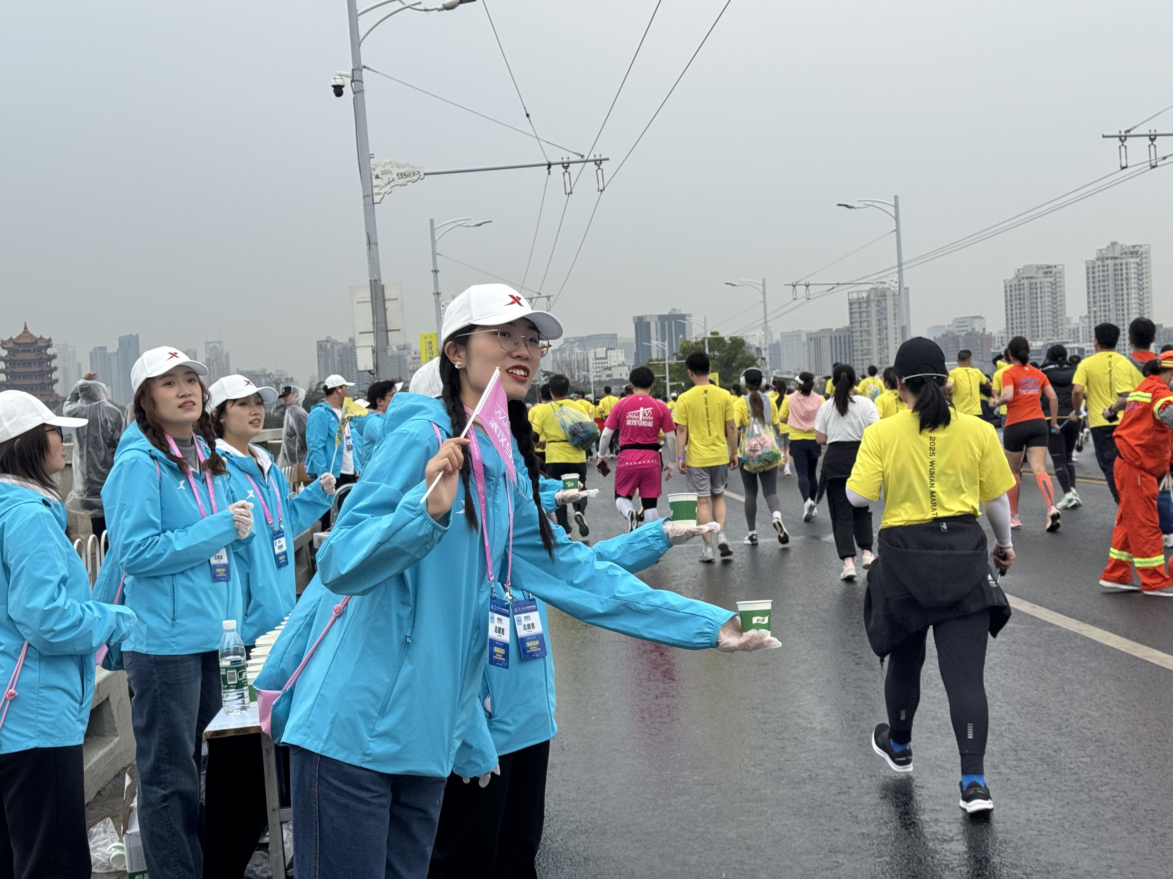 在长达10公里的补给站,志愿者们化身“能量守护者”。他们面带微笑,以标准姿势为选手递水、递海绵,同时用嘹亮的加油声为参赛者注入动力。赛道旁,财税学子手持指示牌引导观众文明观赛,耐心解答路线咨询。一位外地选手感慨:“志愿者专业又热情,让我感受到武汉的温度!”