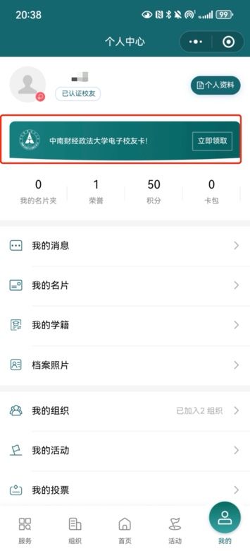 二、智慧校友平台电子校友卡领取流程