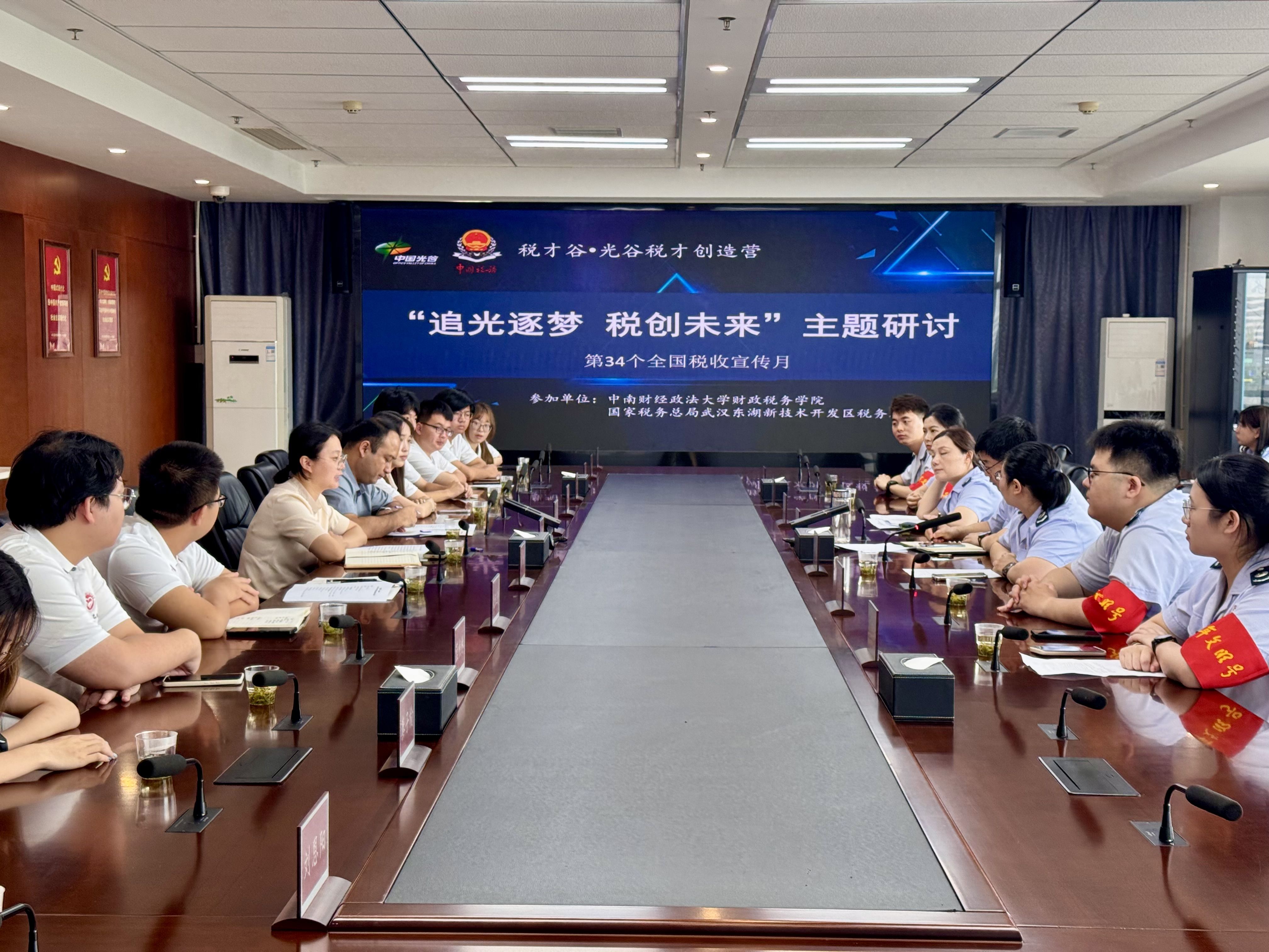为深化“政产学研用”协同育人机制,推动高校专业教育与税收实践深度融合,培养适应新时代需求的高素质税务人才,5月20日上午,学院党委副书记杨少同一行13人赴国家税务总局武汉东湖新技术开发区税务局(以下简称:区税务局)、武汉华康世纪洁净科技股份有限公司开展“追光逐梦,税创未来”税才谷·光谷税才创造营系列活动。区税务局党委委员、副局长杜宝成;华康世纪洁净科技股份有限公司总经理谢新强,财务总监张英超、税务经理许婷出席活动。
