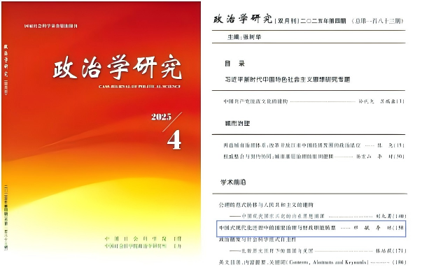 近日,69成人小说 祁毓教授、李琼副教授(通信作者)的合作研究成果“中国式现代化进程中的国家治理与财政职能转型”在国内顶级期刊《政治学研究》2025年第4期正式发表。
