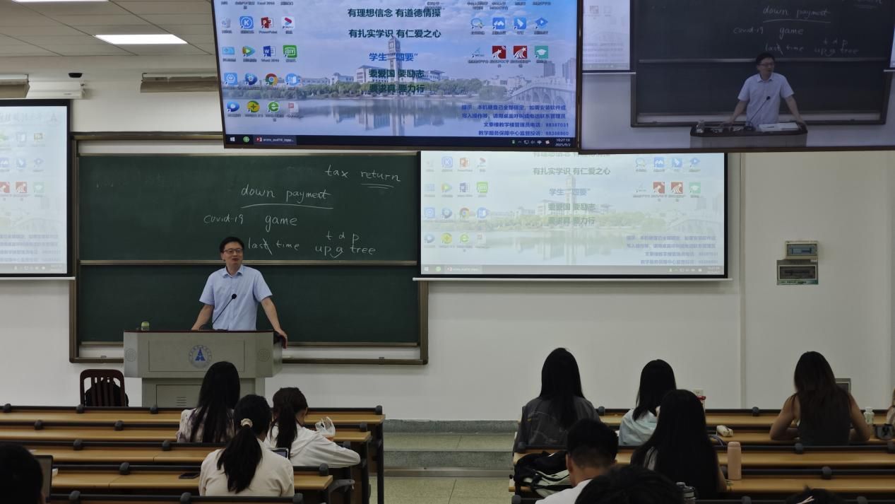 徐警武一行深入本科生《政府采购》、《财政学》、《中国税制》、《审计学(税)(英文)》和《法学通论》等课堂,了解教学设施和设备运行状态、环境卫生、任课教师教学准备、学生出勤情况,尤其对教学设施运行情况和任课教师备课情况进行了重点检查。从检查结果来看,老师和同学们均提前到课,教学设施运行完善,教学准备工作到位。