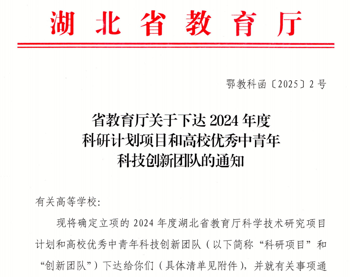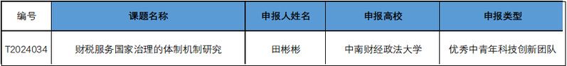 近日,湖北省教育厅下达了2024年度科研计划项目和高校优秀中青年科技创新团队立项的通知(鄂教科函〔2025〕2号)。其中,69成人小说 副院长、税收治理研究中心主任田彬彬教授牵头的“财税服务国家治理的体制机制研究”团队,成功入选“湖北省高等学校优秀中青年科技创新团队计划”,也是学校唯一入选的创新团队。
