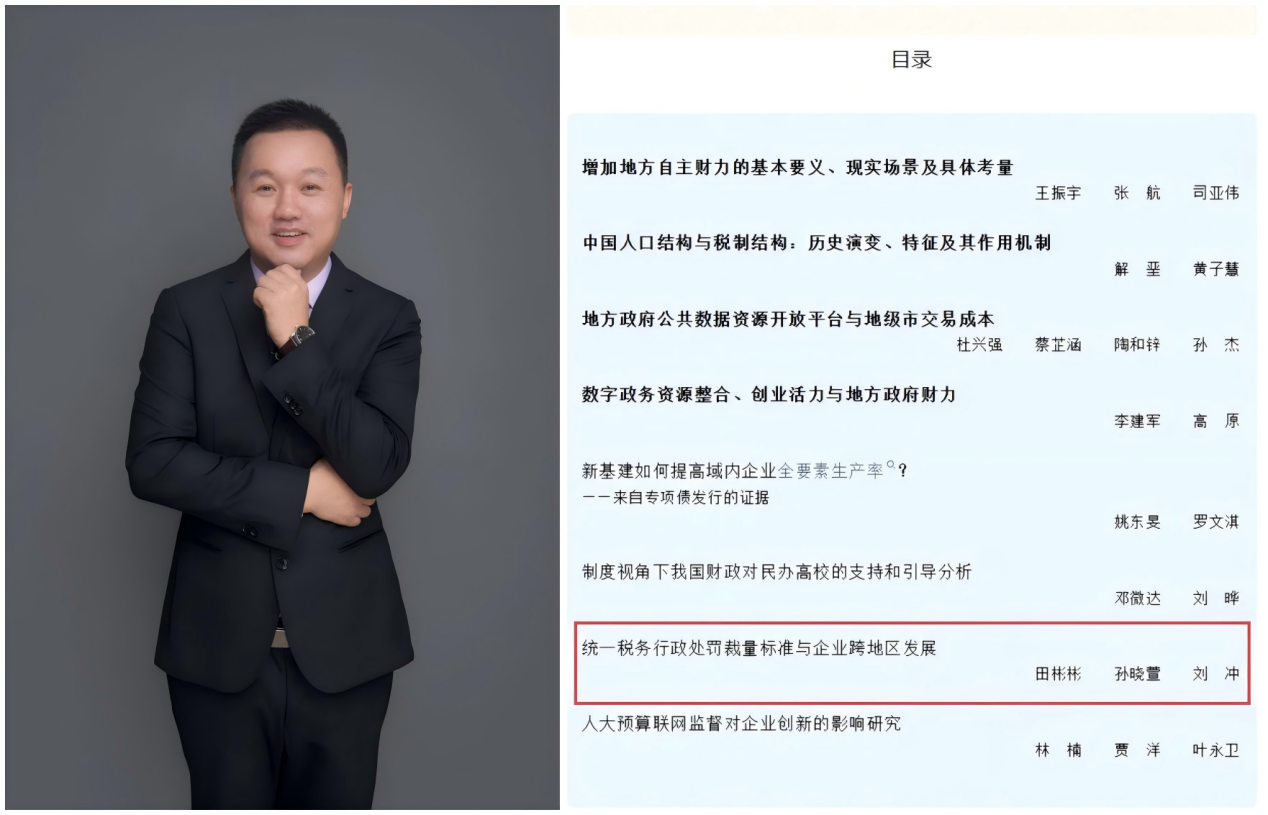 近日,69成人小说 副院长田彬彬教授及其团队成员(孙晓萱,财税学院博士生;刘冲,北京大学博雅青年学者、长聘副教授)合作完成的研究成果“统一税务行政处罚裁量标准与企业跨地区发展”在国内权威期刊《财政研究》2025年第10期正式发表。