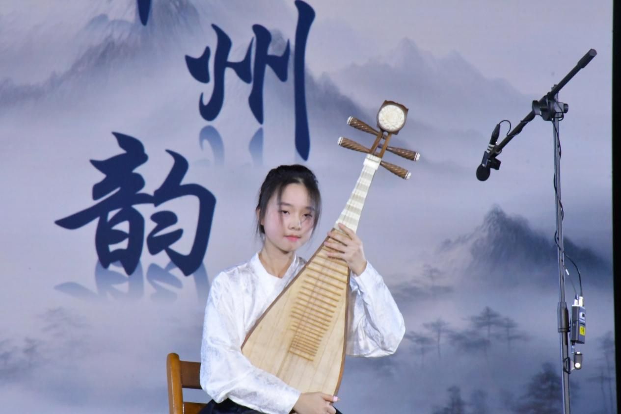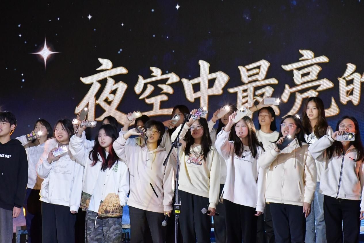 聂雅宣、杜奕慷、辛晴好与屠译萱四位同学表演舞蹈《like Jennie》,以利落卡点的动作与飒爽自信的台风引爆全场;苏畅同学的琵琶独奏《中州韵》,以千年古韵引领观众穿越时空,沉浸于典雅意境;潘子浩同学独唱《再回首》,嗓音深情动人,引发全场尖叫与集体合唱,将晚会化为一场感人至深的青春回忆现场。
