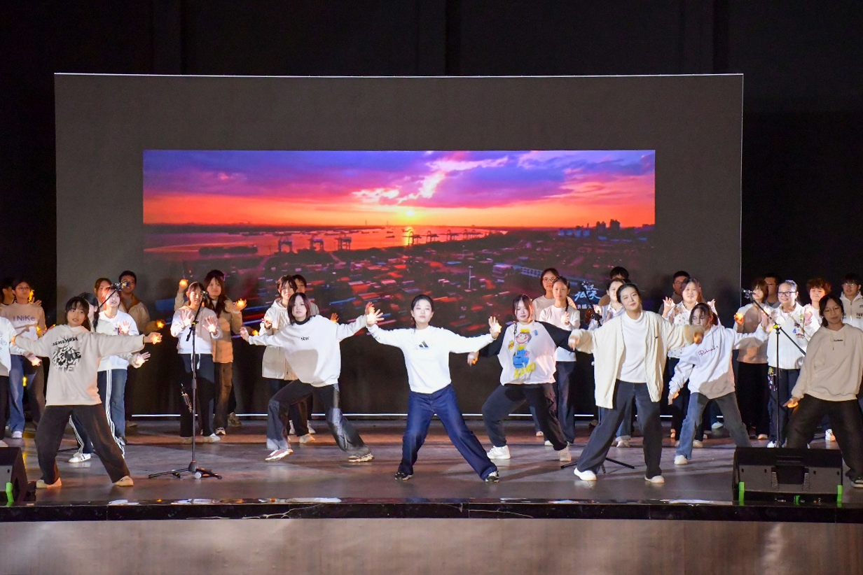 布勒迪尔辛·阿赛提与梁奥程同学演绎舞蹈《石榴花盛开》,巧妙融合哈萨克族的豪迈与朝鲜族的优雅,舞姿交织中诠释“各民族像石榴籽一样紧紧抱在一起”的深刻主题。数财2501班则带来集体舞《我的未来式》,以整齐划一的动作、自信昂扬的笑容,展现出青年一代的磅礴朝气与无限可能,发出对未来最响亮的回答。