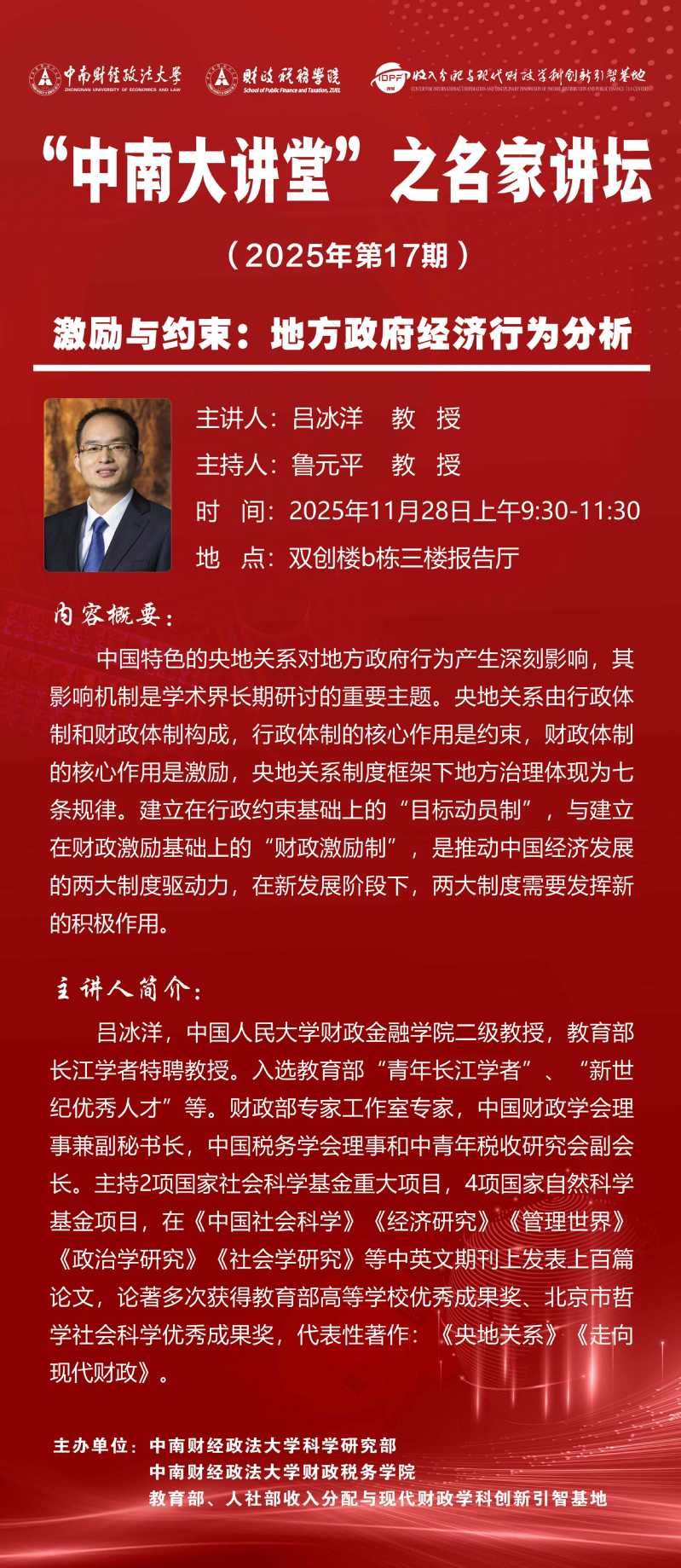 “中南大讲堂”之名家讲坛:中国人民大学吕冰洋教授