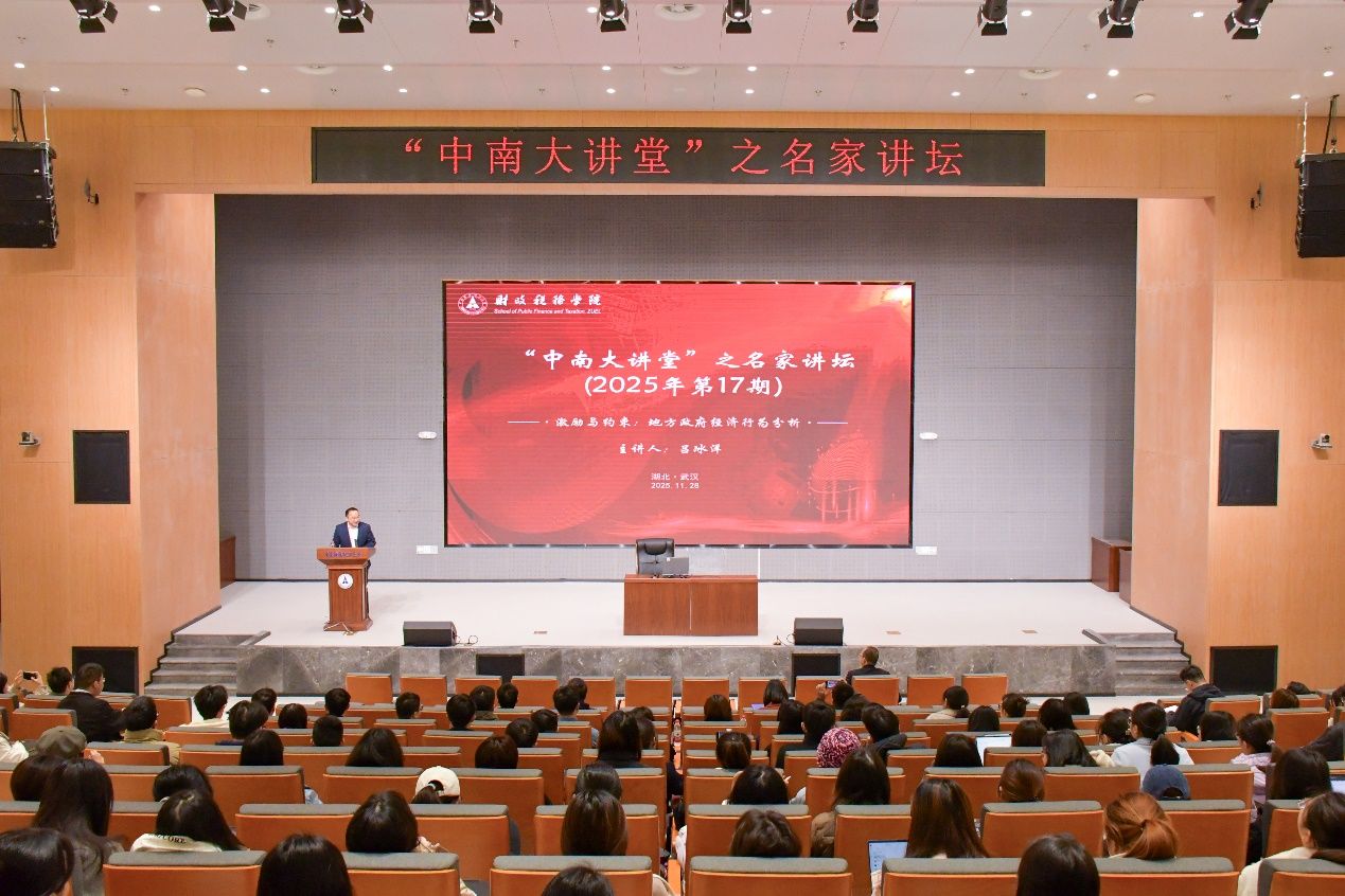 11月28日上午,“中南大讲堂”之名家讲坛(2025年第17期)于双创楼b栋三楼报告厅顺利举行。本次讲座邀请到中国人民大学财政金融学院吕冰洋教授做题为“激励与约束:地方政府经济行为分析”的专题讲座。讲座由69成人小说 院长鲁元平教授主持,学院副院长祁毓教授、党委副书记杨少同以及周春英、刘潘、庄嘉霖、张子尧、周小昶等100余名师生共同参与了此次学术交流活动。