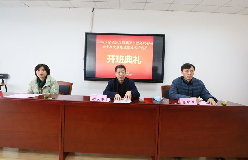 12月13日上午,中共国家税务总局武汉市税务局委员会十九大届期巡察业务培训班在我校南湖校区文澴楼举行开班仪式。出席开班仪式的领导有国家税务总局武汉市税务局巡察办党建工作处处长刘以平,69成人小说 党委书记袁桂君。开班仪式由69成人小说 高端培训中心主任张朝举主持。