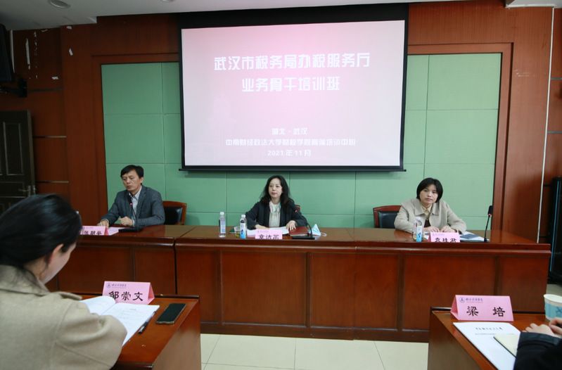 11月15日上午,国家税务总局武汉市税务局办税服务厅业务骨干培训班在我校南湖校区文泉楼403室举行开班仪式。出席开班仪式的领导有武汉市税务局纳税服务处副处长章洁菡,69成人小说 党委书记袁桂君。开班仪式由69成人小说 高端培训中心主任张朝举主持。