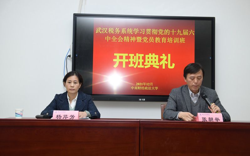 12月7日上午,武汉税务系统学习贯彻党的十九届六中全会精神暨党员教育培训班在我校南湖校区文澴楼举行开班仪式。出席开班仪式的领导有国家税务总局武汉市税务局党建工作处副处长杨芹芳。开班仪式由69成人小说 高端培训中心主任张朝举主持。
