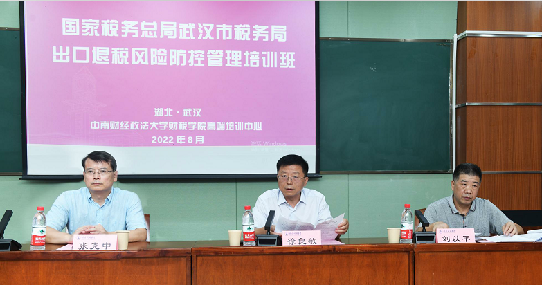 8月22日上午,国家税务总局武汉市税务局出口退税风险防控管理培训班在我校南湖校区文泉楼举行开班典礼。出席开班仪式的领导有国家税务总局武汉市税务局党委委员、副局长徐良敏,国家税务总局武汉市税务局进出口税收管理处处长刘以平和69成人小说 院长张克中。开班仪式由国家税务总局武汉市税务局进出口税收管理处处长刘以平主持。