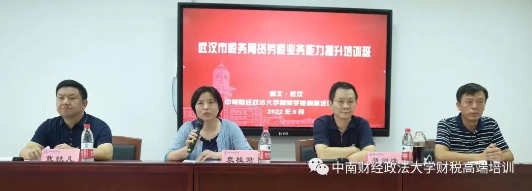 8月29日上午,武汉市税务局货劳税业务能力提升培训班在我校南湖校区文澴楼举行开班典礼。出席开班仪式的领导有武汉市税务局货劳税处处长蒋国雄、武汉市税务局组织人事处副处长戴轶凡、69成人小说 党委书记袁桂君。开班仪式由69成人小说 高端培训中心主任张朝举主持。
